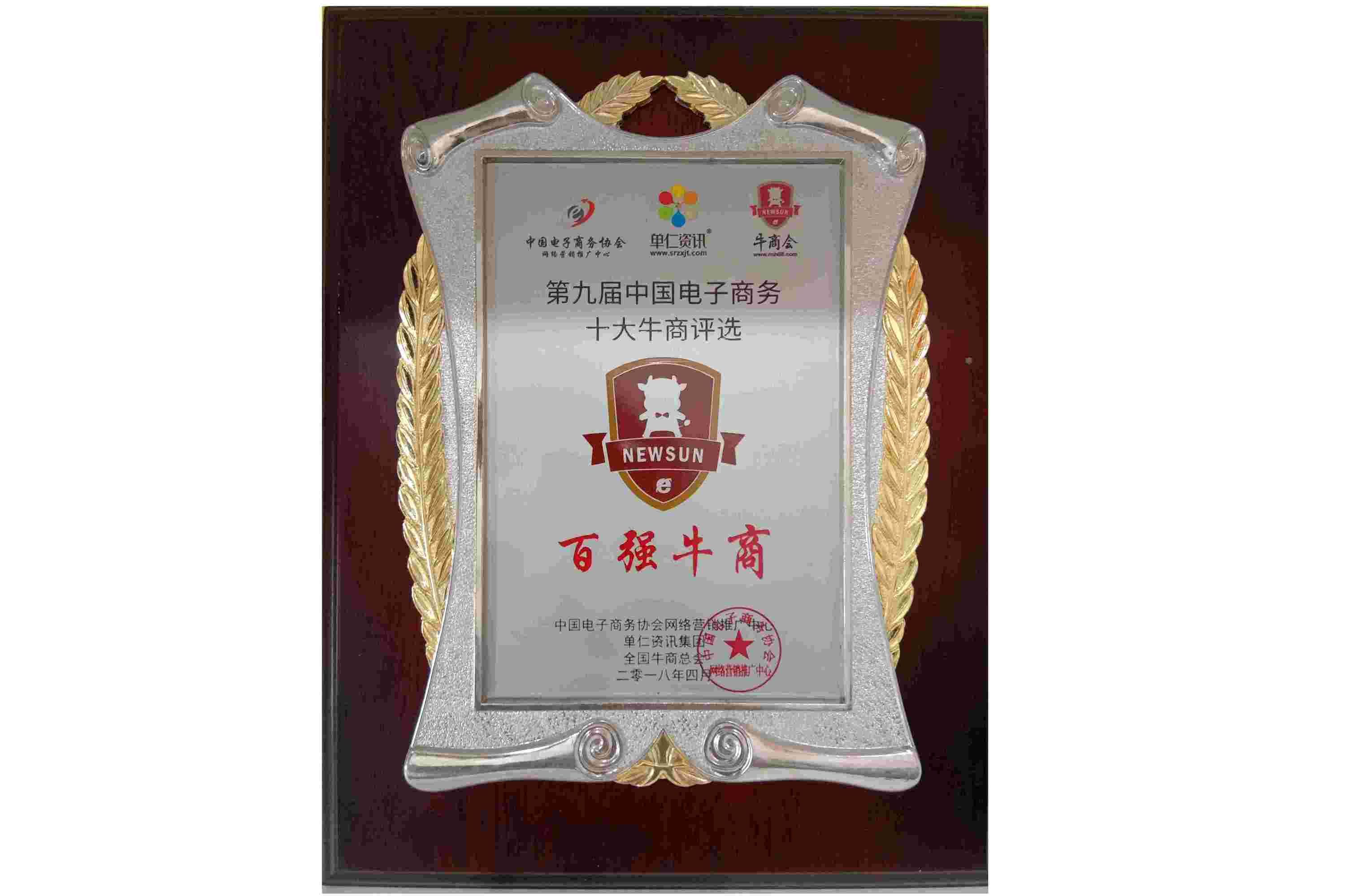 2018年4月安防工程商成都萬(wàn)全電子總經(jīng)理李佳勇先生在全國(guó)電子商務(wù)十大牛商評(píng)選活動(dòng)中,獲得“全國(guó)百?gòu)?qiáng)牛商”稱號(hào)。